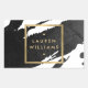 Pinceladas de tinta preta e escuras criam um cenário abstrato neste design de adesivo personalizado. Seu nome ou o nome da sua empresa é exibido em uma caixa dourada falsa para uma estética moderna. Esses adesivos são ótimos para usar no fechamento de envelopes ou pacotes, personalizar o texto para dizer 'obrigado' para lembrancinhas de festa, usar para rótulos de produtos ou velas, ou para personalizar os materiais do seu escritório ou material escolar. Arte e design © 1201AM Design Studio | www.1201am.com