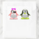 Uma bela imagem de um pinguim de menino e menina. O pinguim-menina tem um arco rosa e pés cor-de-rosa. O pinguim-menino tem verde limão pé. As crianças adorariam estes autocolantes. Perfeito para si mesmo ou como presente.