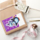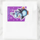 Adesivo Retangular Pintor de retângulo roxo Natal Pinguim skater.