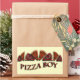 As peças de pizza tentam as papilas gustativas com anéis de pepperoni, salame, queijo e outras passagens deliciosas. Uma ideia de presente de excelente para amigos comidas rápidos.