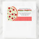 O nosso favorito do Pizza Party fará com que todos fiquem com fome de uma pizza! A design apresenta as palavras "Pizza Party!" em vermelho e verde ao lado de uma toalha de mesa vermelha e branca e uma pizza suprema grande.