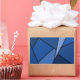 Inspirado pelo vidro colorido, este na moda geométrico contém polígonos em vários tons de azul esboçado em preto. Um triângulo azul claro desliza do canto superior direito com um conjunto de quadrangulares azuis progressivamente mais escuros e outras formas espiralando ao redor dele da luz para a escuridão. Duas formas azuis escuras movem o lado esquerdo do design original. Imagem criada digitalmente. Copyright © 2014 Claire E. Skinner. Todos os direitos reservados.