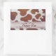 Adesivo Retangular Pontos de Vaca Castanho e Branco Obrigado