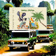 Adesivo Retangular primeiro aniversario Selgle Safari Elephan Giraffe