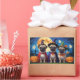 Uma cena divertida de Halloween, com um cachorrinho malicioso a espreitar-se de uma abóbora esculpida, rodeada por vibrações de outono assustadoras. Com um charme viscoso e cores de outono, é o toque perfeito de humor para a estação.
