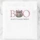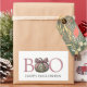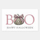 Boo! Abóbora de pele cobra moderna, branca, com adesivos pretos de Halloween, arco cor-de-rosa. Feliz Dia das Bruxas. Coloque suas bolsas doces, ou outros itens.