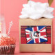 Engraçado colagem de pássaros guineafowl vestindo um penteado mohican mowhawk com um texto de anarquia com uma jack vermelha branca e azul de sindicato britânico e um fundo real de Tartan escocês Stewart. Para os produtos de pintadas correspondentes e personagens animais mais divertidos, visite o VINTAGEPRINTSORE.