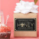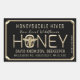 Quadro Dourado 3D. "MEL" é escrito em texto gravado em relevo. Abelha Rainha Dourada. Adicione seu nome apiário, variedade de mel, peso líquido, nome e informações de contato. Feliz apicultura!