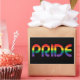 Este design de arco-íris colorido traz a palavra Orgulho.