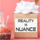 O mundo é complexo e as questões são complexas, mas as pessoas - especialmente nas redes sociais - querem tratar as coisas como preto e branco. A realidade é que as coisas são matizadas, então o vamos pára de gritar com o outro e traz nuance de volta.