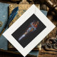 Um pequeno dragão vermelho sentado sobre uma espada com a cauda envolta à espada