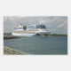 Após uma visita de escala à Costa Espacial, um navio de cruzeiro alemão com um rosto sorridente no seu arco faz-se subir pelo Canal Canaveral, em direção ao Oceano Atlântico.