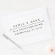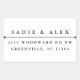 Um carimbo clássico de endereço de retorno com uma linha elegante que separa o nome do endereço. Mostrado com nomes de casais, fazer perfeito para salvar as datas, o noivado ou o convite de casamento. Todos os tipos são personalizáveis. Use um nome e sobrenome, nome da empresa, nomes de casais ou apenas sobrenome. As opções são intermináveis e inteiramente da sua responsabilidade.