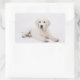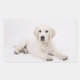 Fotografia de um jovem ouro recuperador deitado sobre um fundo branco.