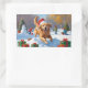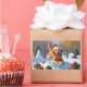 Adesivo Retangular Retriever ouro em neve com chapéu de Natal