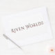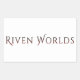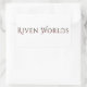 adesivo branco 4x2.7 com o logotipo Riven Worlds.