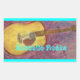 mostra uma guitarra acústica colorida com a patina amarela da arte original! também o slogan "Rochas Acústicas"