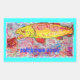 mostra truta arco-íris colorida perseguindo uma mosca com um visual de tela impressão! também com o slogan do "arco-íris"