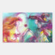 Cena de Romeo e Julieta tragédia de William Shakespeare .Pintura original contemporânea em aquarela com folha de ouro e cores iridescentes em roxo brilhante , rosa, verde, laranja amarelo , azul turquesa, turquesa, branco ..Pintura de Bulgan Lumini (c)