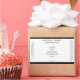 Um rótulo elegante de cosméticos minimalista com fundo branco, texto preto e uma borda negra.