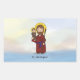O Christopher é pintado de uma maneira simples. Ele está segurando Jesus e carregar um funcionarios na mão. O fundo com aspecto aquoso faz referência ao rio que ele está atravessando enquanto carregar a criança Cristo. Mande bênçãos na Rua. Dia de Christopher. Perfeito para adultos ou jovens. Seu dia de banquete é celebrado no dia 25 de julho, mas isso pode ser enviado a qualquer momento.