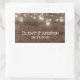 Este belo e elegante adesivo apresenta jarras de pedras e luzes de cordas em um fundo de madeira rústica. Fácil de personalizar com seus próprios nomes e data de casamento. Por favor, entre em contato comigo com as personalizações adicionais de design que você precisar para o seu belo casamento. Design © por TK Goforward. Para coordenar itens, visite minha coleção de Casamentos Rustic Mason Jar and String Lights e minha loja Zazzle: