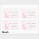 Um belo design romântico de casamento de adesivos retangulares mostrando as silhuetas de beijos enquadradas da noiva e do noivo contra um fundo cor-de-rosa sonhador, com data personalizável, nomes e palavras "salvar a data" ao lado.