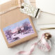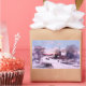 Igreja numa véspera de Natal branca. Uma cena de inverno com pessoas andando e cavalgando em carruagems puxadas por cavalos aos serviços cristãos. País rural com uma ponte de pedra sobre um riacho, árvores e terras agrícolas. O céu é azul e rosa com nuvens brancas. Este trabalho de arte Vintage é de 1898 pintado por Andrew Melrose e em Dominio público.