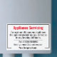 Fique com um aparelho doméstico. Etiqueta de engenheiro branca. Etiqueta de manutenção do equipamento de cozinha. Manutenção e reparações.