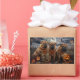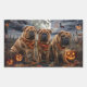 Libere o espírito assustador com esta design sombria do Dia das Bruxas apresentando um bando de cachorros sob um céu escuro e iluminado, cercado por morcegos voadores e abóboras brilhantes. Perfeito para aqueles que amam um toque de diversão terrível com seus amigos peludos!