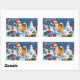 Adesivo Retangular Shiba Inu correndo em neve com chapéu de Natal