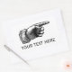 Este adesivo retrorreflector contém o desenho de uma mão com um dedo pontiagudo. Mostra à direita e o texto é personalizável. Pode ser usado para indicar perigo ou algo importante. O design é clássico desenhado à mão (recorte de madeira) e vem de um livro antigo. O uso deste item mostrará qualquer aviso que você quiser que seu cliente ou visitante faça, mas em um estilo clássico e vintage. Ideal para o compro antigo de qualquer área onde você não quer perturbar a ambição eterno com um cartaz moderno ou conselho de aviso.