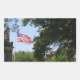 Bandeira na janela pelo Independence Hall em Filadélfia, PA. Linda fotografia tirada por Amy Marie. Copyright Amy Marie.