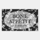 Esqueletos em fundo preto com BONE APPÉTIT em letra chic junto com seus nomes nesses adesivos retangulares. Divertido para a sua festa de Halloween ou qualquer ocasião. CORRESPONDENTE a itens na nossa coleção