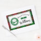 Each large rectangular label features a vintage express-delivery-style stamp, complete with Santa and his sleigh illustration, festive postage markings, and space to add your child’s name for that authentic “North Pole” touch.