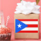 Vinhetas retangulares com bandeira da Comunidade de Porto Rico (território não incorporado dos Estados Unidos); listras vermelhas e brancas e uma estrela branca num triângulo azul