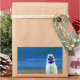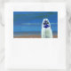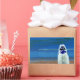 Presentes de fotografia de praia com uma prancha branca na areia com a bela praia azul ao fundo. Foto tirada em Flagler Beach, Flórida.