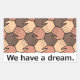 Mãos de várias cores da pele se aproximando — com o texto "Nós temos um sonho." Um design gráfico enselador de Susan EileenEvans