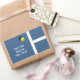 Etiquetas de presente de tênis único, etiquetas de favoritos partidários e selos de envelopes com uma bola tênis amarela no campo azul tênis. Editar texto para personalizar.