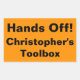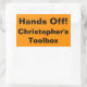 Mantenha suas ferramentas a salvo de mãos vagando com nosso adesivo "Mãos fora da Caixa de Ferramentas". Quer você seja um profissional de mão ou simplesmente como atacar projetos do DIY em casa, este adesivo é uma maneira divertida de mostrar aos outros que sua caixa de ferramentas está fora dos limites.