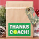 Um adesivo retangular divertido para agradecer ao seu treinador de tênis favorito, com OBRIGADOS COACH! impressos em texto branco e um gráfico realista de tênis no lugar do O. Estes são perfeitos para embrulhamento de presente para os treinadores de tênis ou como decoração de tênis, especialmente na festa ou banquete do tênis de fim de estação do seu time!