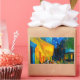 Vinhetas com a pintura a óleo de Vincent van Gogh Café Terrace à Noite (1888). Estrelas amarelas pintam o céu azul noturno acima de um café ao ar livre na França. Um presente maravilhoso para fãs do Impressionismo Poste e da arte holandesa.