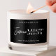 Melhore o design de embalagem do seu produto com uma etiqueta de vela personalizada. Este mínimo retângulo preto, pote e design de cola de estanho, com modernos roteiros e fontes de serifa farão com que suas velas de cera de soja pareçam a parte! Você pode inserir seu nome comercial e seu logotipo, assim como adicionar seu nome de cheiro a este modelo de etiqueta de velas elegantes.