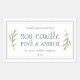 Rótulo de vela de soja orgânica caseira extra grande moderno, rústico e simples com o texto feito com amor, vela de soja, seu aroma personalizado (pinho e âmbar) e o nome da sua empresa em escrita à mão elegante em preto claro e tipografia moderna em um fundo branco com um toque elegante de folhagem de pinheiro rústico. Basta adicionar suas informações ao rótulo e você estará pronto para vender suas velas de soja artesanais lindamente feitas à mão! Exclusivamente projetado para o seu pequeno negócio pelo Happy Dolphin Studio. Se precisar de ajuda ou produtos correspondentes, entre em contato conosco em happydolphinstudio@outlook.com.