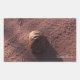 Speed Bump Nature Foto impressões e presentes apresentam uma fotografia divertida de uma tartaruga no meio da estrada, seu padrão de conchas que corresponde aos das trilhas de jipe na estrada de terra tirada por Kurt Keller com uma câmera de 35 mm enquanto está em um safari africano em Botswana, África do Sul e Zimbábue. Quem ama animais africanos, vida selvagem, tartaruga ou amantes de tartarugas apreciará esta interessante foto de uma tartaruga escondida em sua concha no meio da estrada de terra no meio da savana africana.