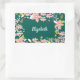 Adesivo Retangular Verde com Flores Rosa Personalizadas
