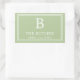 Esses adesivos retangulares personalizados na cor verde sage são perfeitos para um casamento, festa de noivado, chá de noiva ou lembranças para jantar de ensaio, ou como um detalhe adicional para qualquer item. O design apresenta a paleta de cores verde sage em tendência com fontes modernas e simples. Personalize-os com sua inicial, nome e data do evento para torná-los únicos!