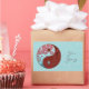 O símbolo tradicional para yin e yang é modelado com flores e espirais em tons de azul-ovo do pinto vermelho e bonito. O símbolo pode ser ampliado para encher o produto ou reduzido em tamanho para um círculo menor, dependendo da aparência que você deseja criar; um fundo azul padronizado é incluído para esta opção. Procure 'Yin Yang com Padrão' para ver outras combinações de cores.