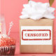 Uma ilustração gráfica de um Carimbo de Borracha Censurado em um adesivo.