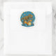 Adesivo Retangular Vinheta: Dinossauro Jogando Tambores com Estrelas